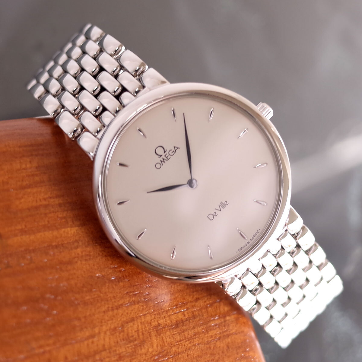 - オメガ デビル 7500.31 32mm径 7連ブレス SS リーフ針 雫インデックス 80’S メンズ ボーイズ クォーツ 腕時計 電池交換済 OMEGA 1年保証