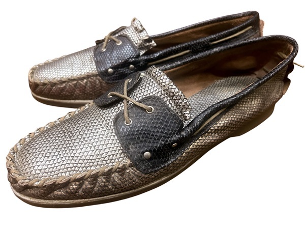 - レア 80’s〜90’s ZODIAC ゾディアック デッキシューズ パイソン柄 ブラック/ゴールド/シルバー US10 28cm程度 ビンテージ オールド USA