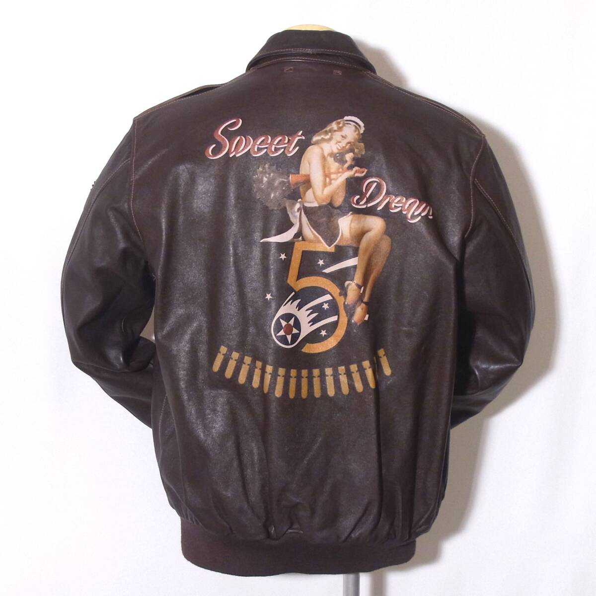 > 新品未使用AVIREX【アビレックスA-2/6191052/2XLホースハイド】人気のピンナップガール/⑭