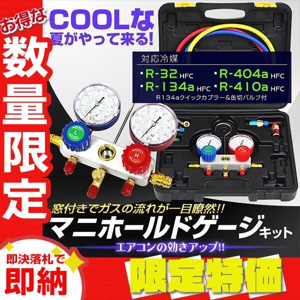- 【限定セール】エアコンガスチャージ マニホールドゲージ R134a R410A R32 R404A 収納ケース付 カーエアコン ルームエアコン ガス補充に