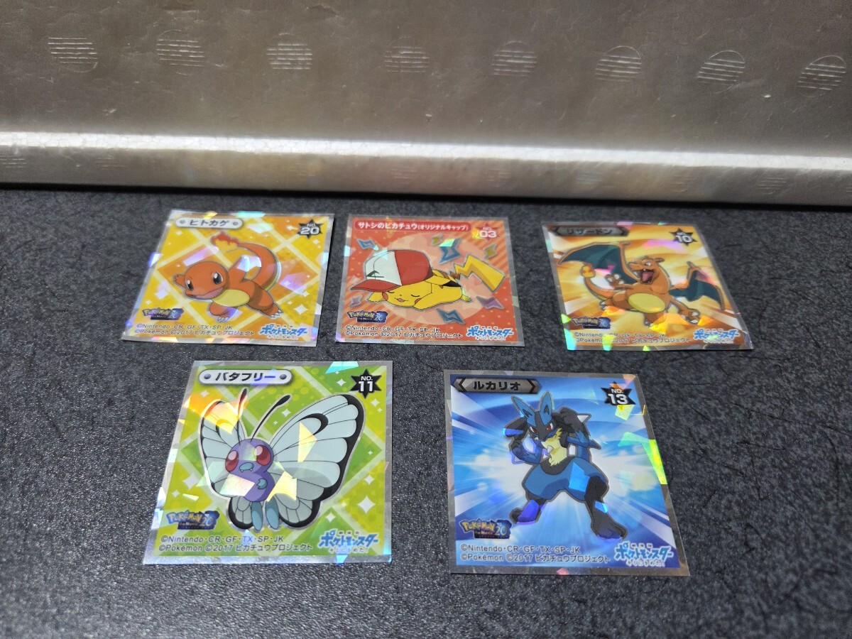 > ポケモン シールセット ウエハース 2017年製造 サトシのピカチュウ(オリジナルキャップ) リザードン ルカリオ バタフリー ヒトカゲ