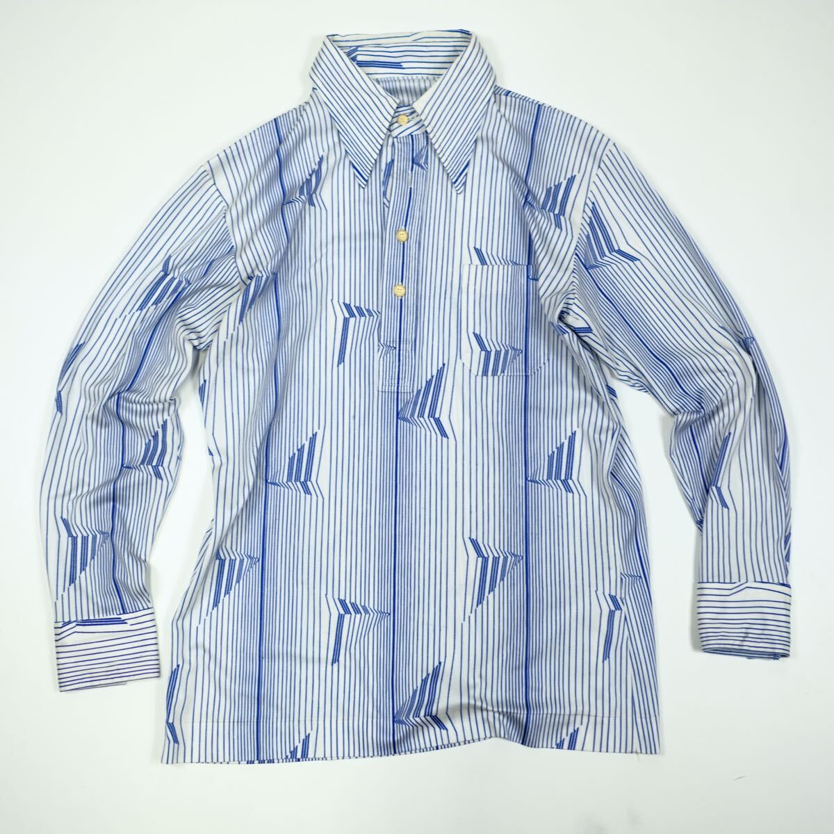 > 1970s ビンテージ ポロシャツ 総柄 デザイン 幾何学模様 ストライプ ポリシャツ 古着屋 USA製 デザイン アート 長袖