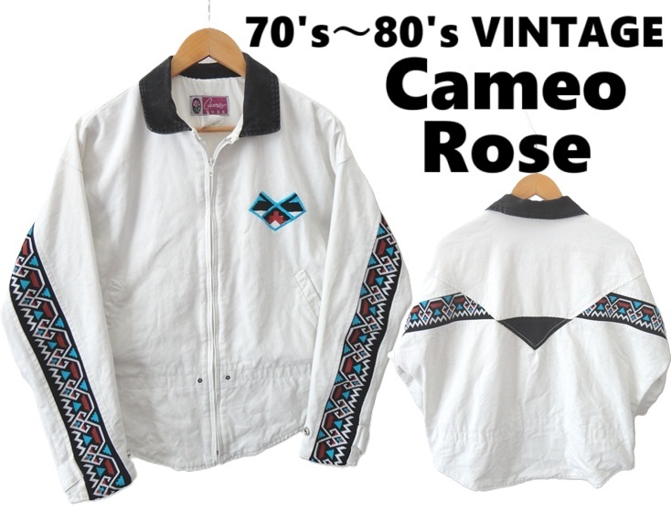 > 70's~80's ヴィンテージ/USA製/Cameo Rose:カメオ ローズ/ネイティブ柄 刺繍/コットン キャンバス ジャケット/ブルゾン/白/L/ジャンパー