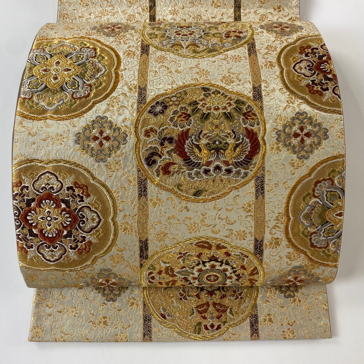> 袋帯 名品 加納幸 落款 華文 向鳥 金糸 箔 金色 お太鼓柄 正絹 【中古】