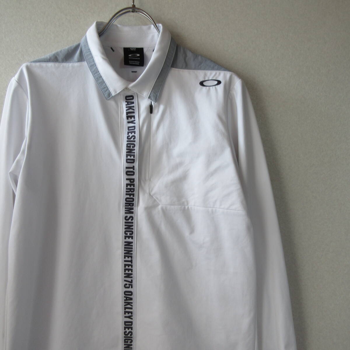 - ○極美品 OAKLEY オークリー◆ゴルフウエア ゴルフシャツ 隠しボタン◆メンズ グレー/ホワイト Mサイズ