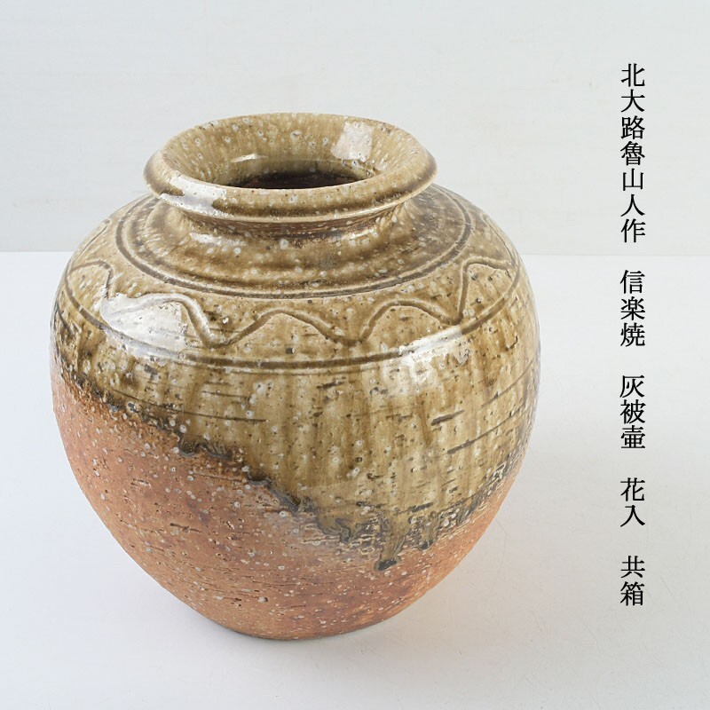 - 北大路魯山人作 信楽焼 灰被壷 花入 共箱 MLFU