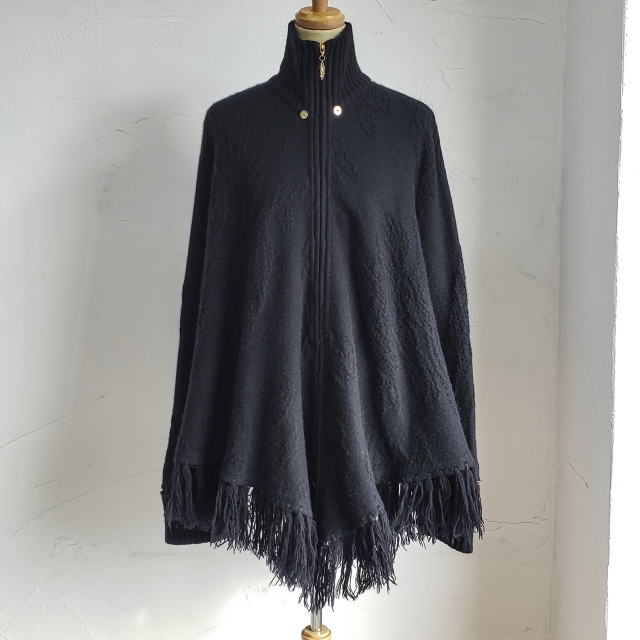 - セントジョン ニット ポンチョ スタンドカラー ジップアップ フリンジ ダークネイビー ST.JOHN