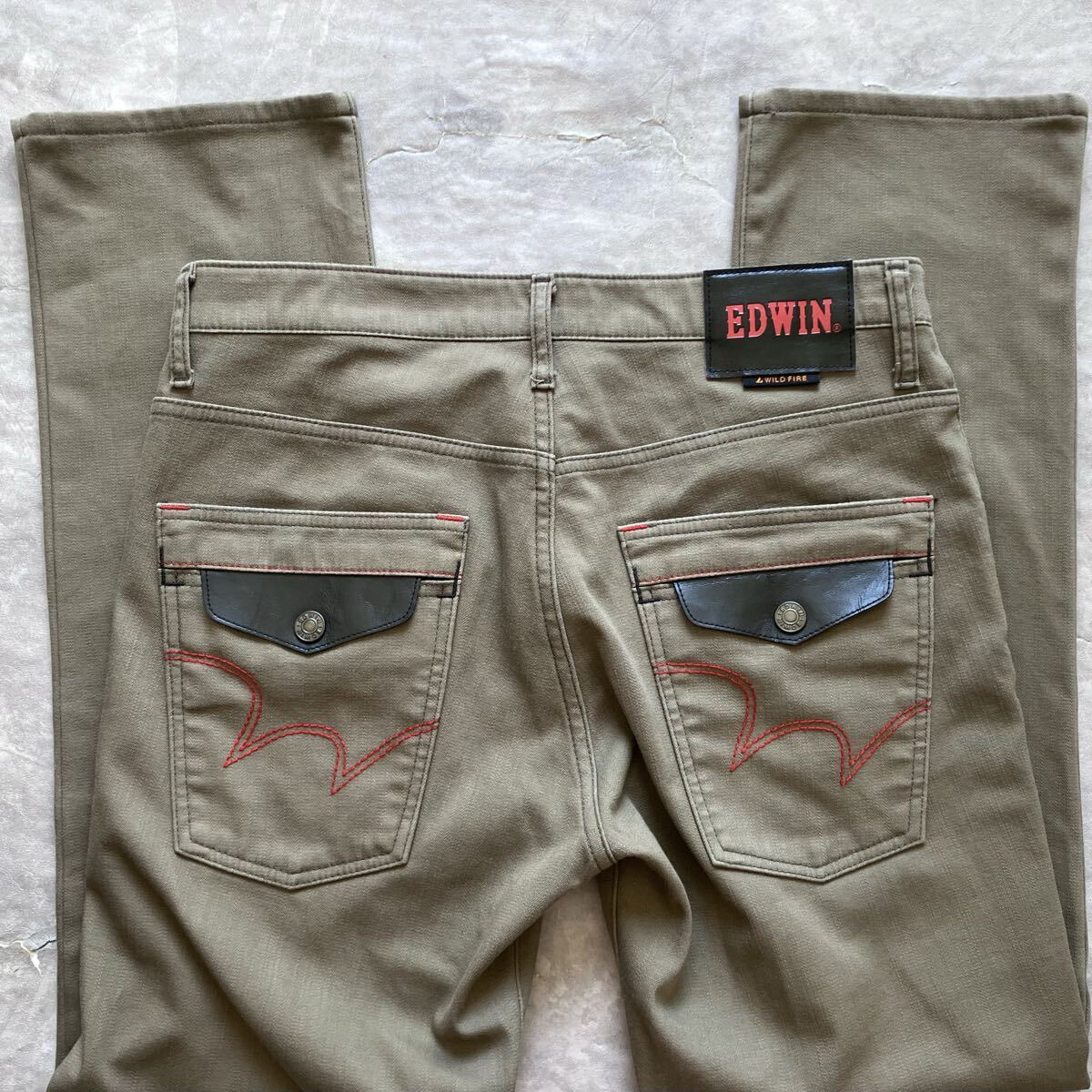 - 即決 サイズ M エドウィン EDWIN 秋冬 暖パン 裏地付 ワイルドファイア WILD FIRE カラージーンズ カーキ 茶色 ストレッチ g638