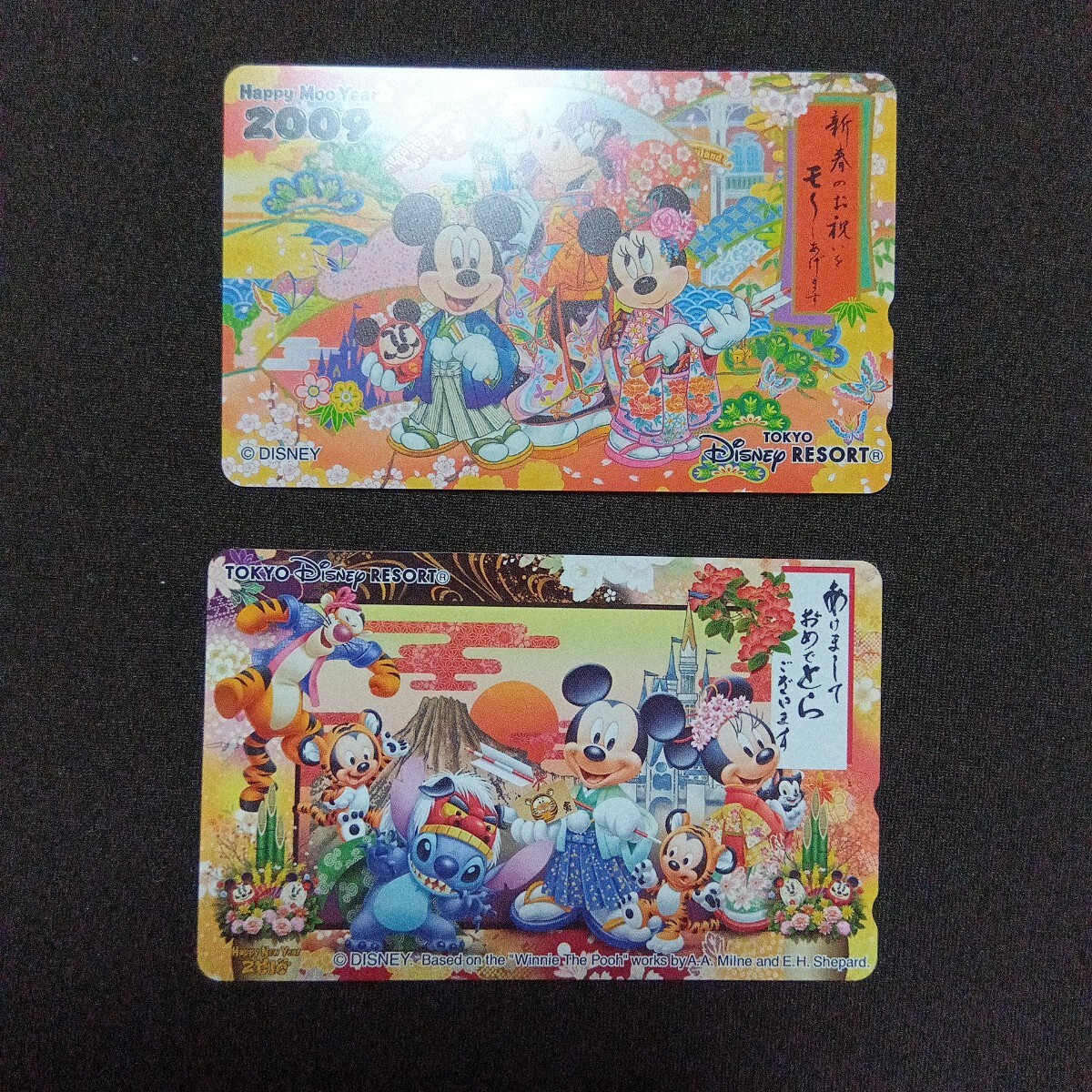 > ディズニーテレホンカード☆Happy New Year 2009 ,2010年 ディズニー テレホンカード 50度数 2枚 セット 未使用