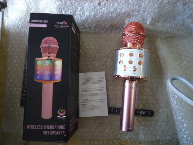 - マイク 動作確認済み ワイヤレスマイク bluetooth ポータブルスピーカー 録音可能 家庭用 カラオケ ローズゴールド 現状渡し品