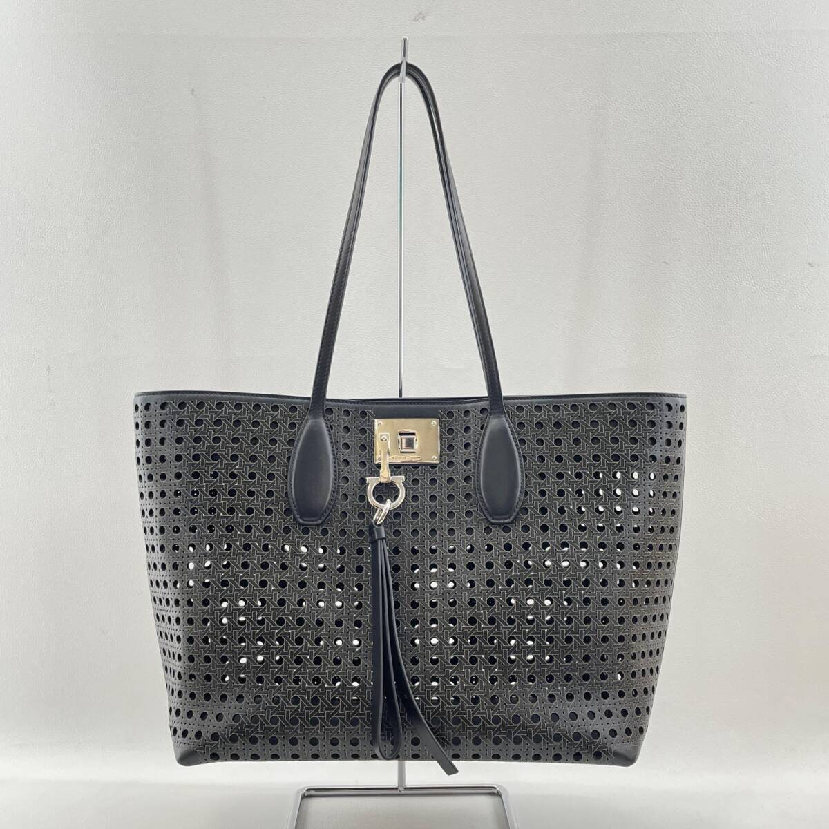 フェラガモ レザートートバッグ ブラック Ferragamo 中古 ◆2015拍卖