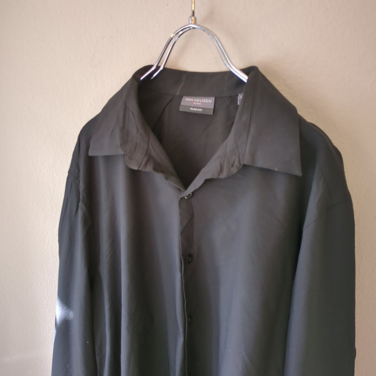 - VANHEUSEN ヴァンヒューセン ブラック シャツ 無地シャツ /y4128