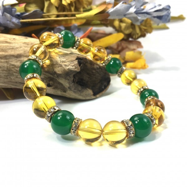 - シトリン×緑瑪瑙 パワーストーン ブレスレット 天然石ブレス 10mm (ゴールド) メンズ・レディース 繁栄 富 幸福