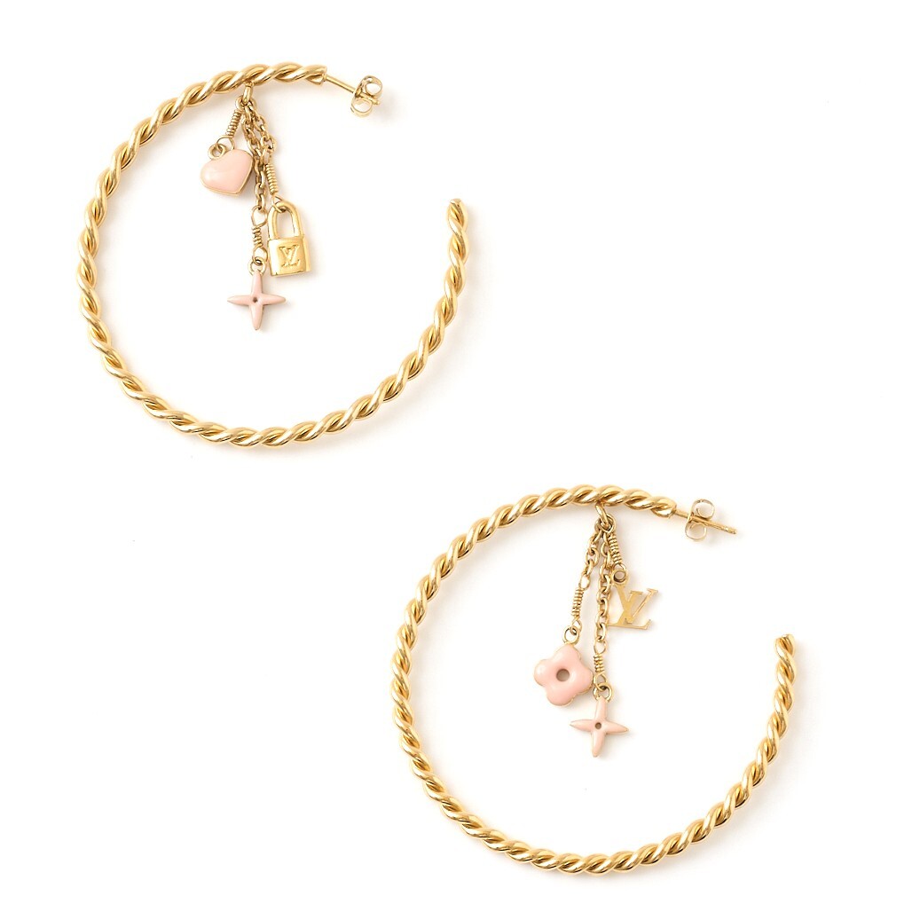 > LOUIS VUITTON ルイヴィトン クレオール・スウィートモノグラム ピアス M65481 イヤリング GP ゴールド×ピンクベージュ レディース