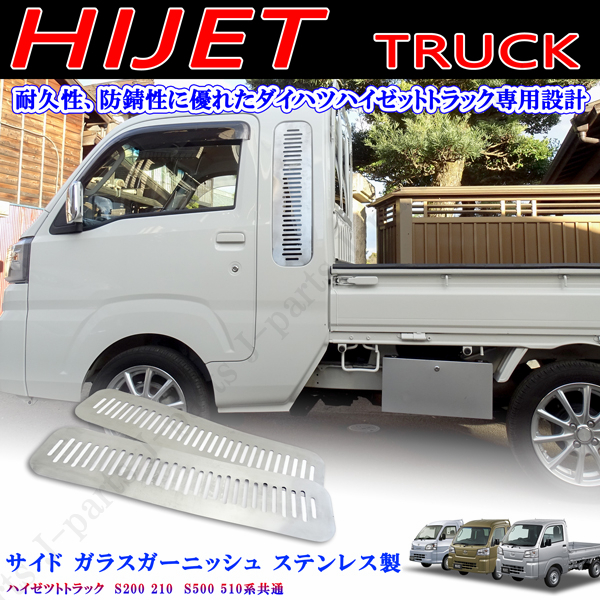 > ダイハツ ハイゼットジャンボ S500 S510P サイド サイドガラスガーニッシュ ステンレス製 ダクトデザイン 前期後期共通 かんたん貼り付け