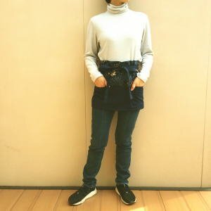 - 着物素材使用【長めサイズ】1400円!蝶文に紺地ポケット付きカフェエプロン