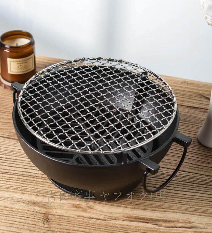 > ☆新品バーベキューコンロ 卓上バーベキュー コンロ 炭火BBQ 小型オーブン丸型 グリル 炭火加熱 アウトドア 26cm サイズ