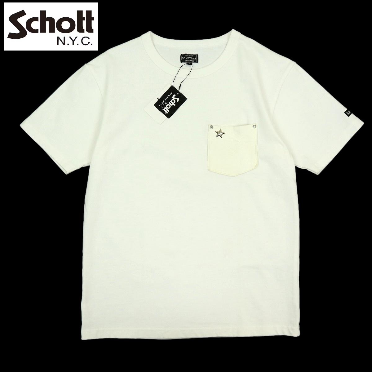 - 【B3460】【新品】SCHOTT ショット Tシャツ カットソー ワンスター ポケT 一部レザー使用 ワンスター 3193049-01 サイズS