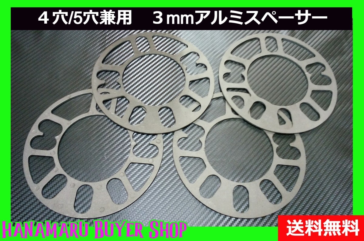 > 汎用アルミスペーサー 厚3mm×4枚セット PCD 100 108 110 114.3対応 5H/4H ホイール【AU-1696】zffql