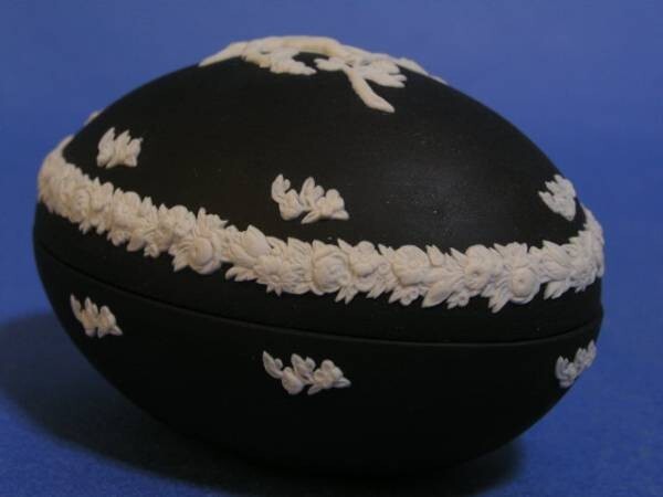 - ◎未使用 ウェッジウッド ブラックジャスパー大型卵形蓋物「天使」◎w35c