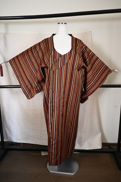 - 和装コート 道行 雨コート ロング丈 単衣 縞 正絹 美品