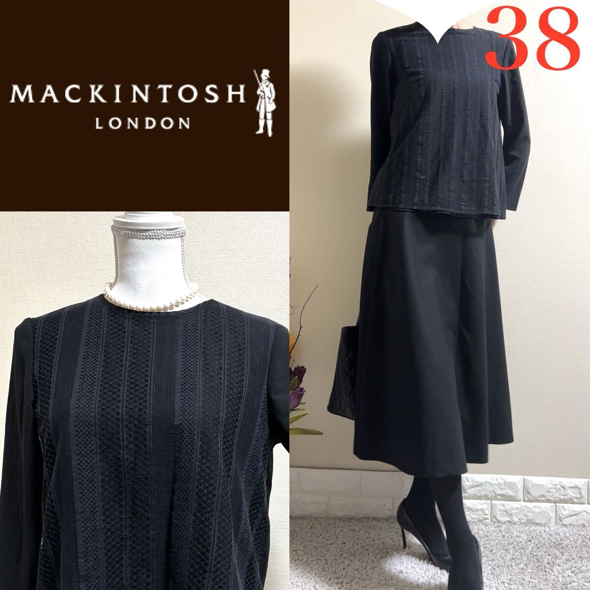 - 美品!マッキントッシュロンドン MACKINTOSH LONDON マッキントッシュ レースレイヤード 七分袖 ブラウス 黒 38 M