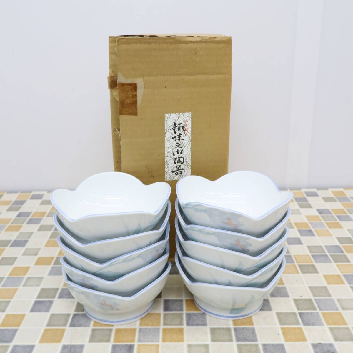 > ◆陶磁器 |中鉢10枚セット|東峰窯 趣味之御陶器 花の舞 |和食器 食器 小料理 前菜皿 10客■O4109