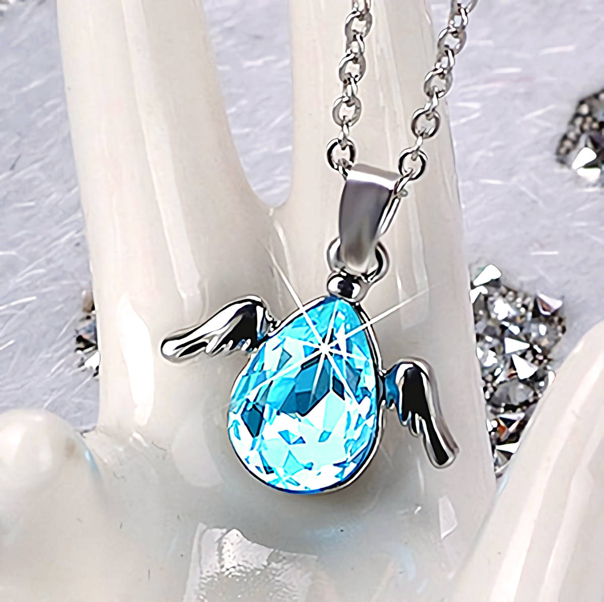 - 新品★送料無料★天使の雫 海空アクアマリン ドロップ プラチナ仕上 925シルバーネックレス誕生日プレゼント旅行連休秋ギフト国内発送