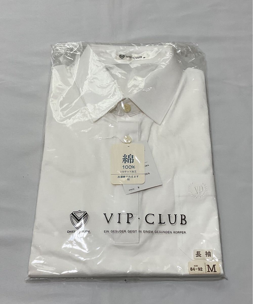 - 新品未使用品 袋入 シルケット加工 VIP Club 長袖ポロシャツ 白 胸囲84-92 Mサイズ