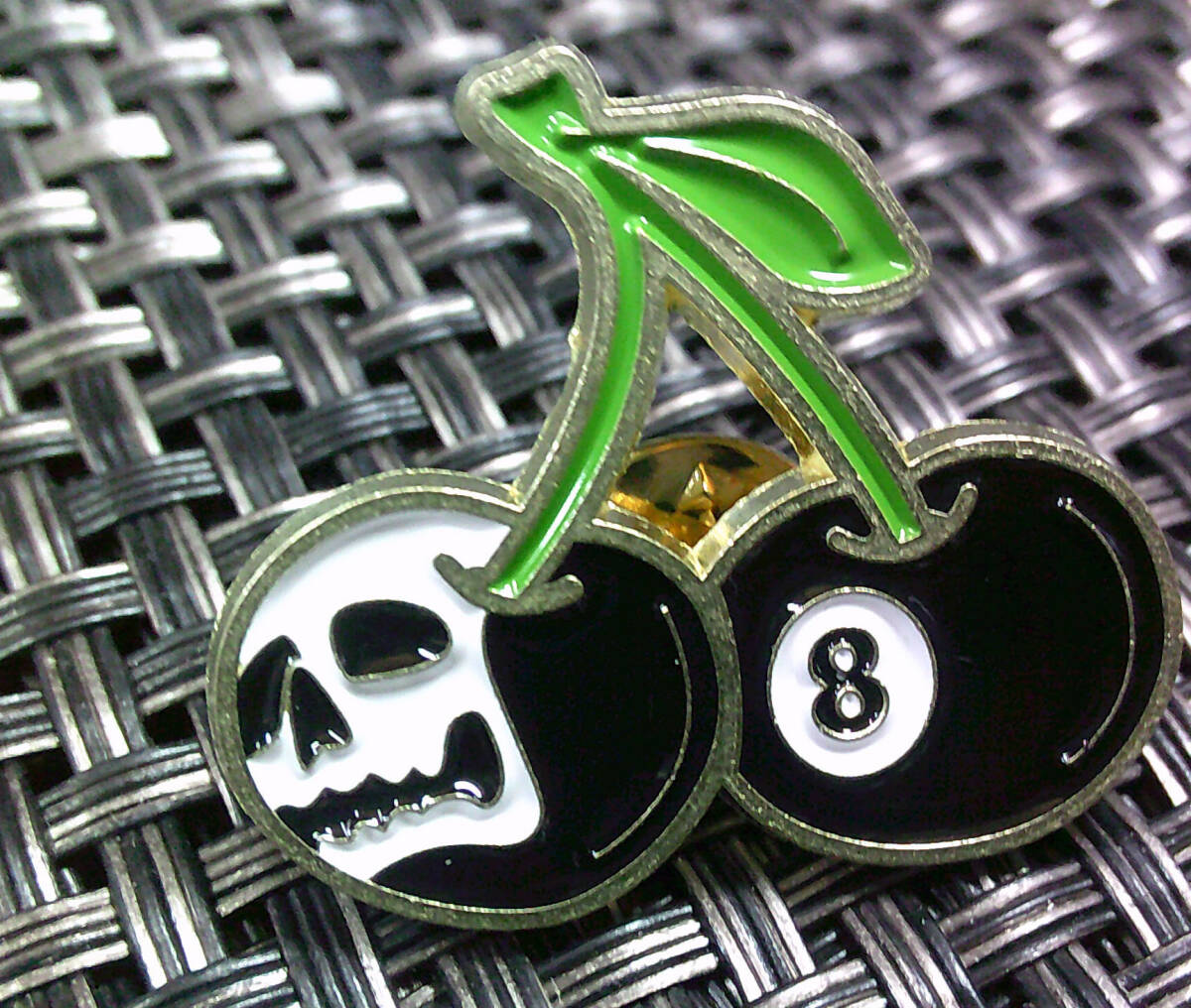 - 《黒桜桃US髑髏8》■新品■チェリー さくらんぼ 髑髏 ビリヤード エイトボール ピンバッジ バッチ■アメリカ◆ ◇・コスプレ■激渋