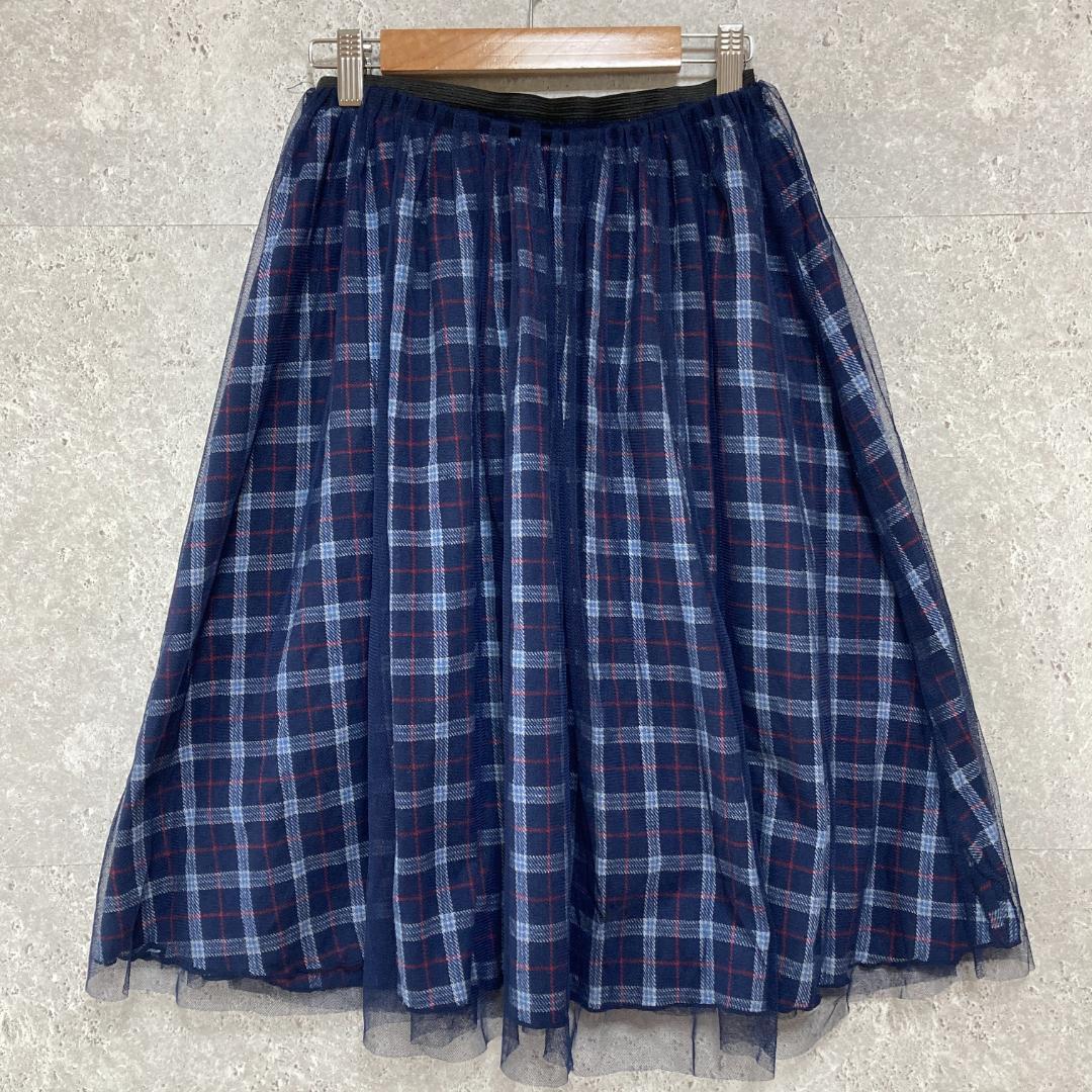 - アズノウアズピンキー(ONE)チェックフレアスカート*チュール付*ミディ丈*ゴム