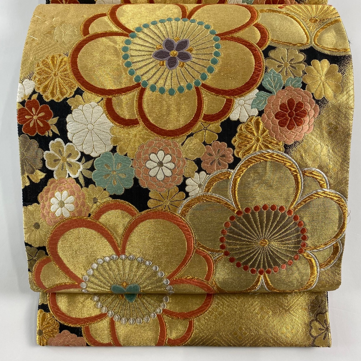 > 袋帯 秀品 梅 菊 唐織 箔 金色 六通 正絹 【中古】