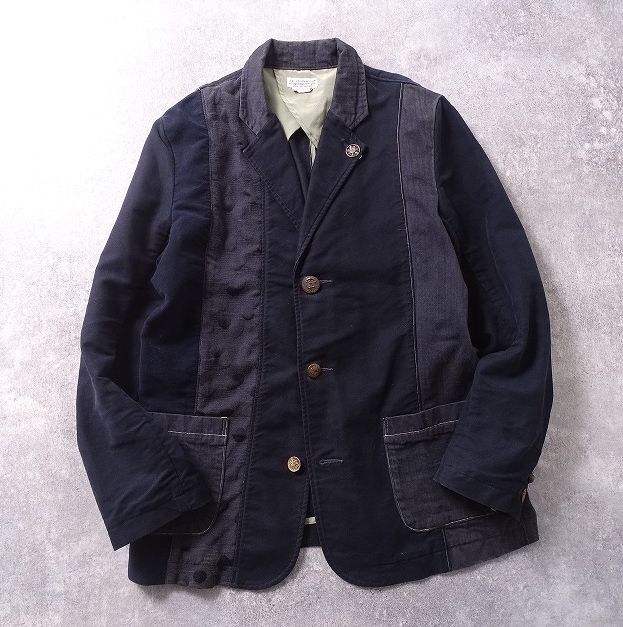 - GO TO HOLLYWOOD ゴートゥーハリウッド 異素材パッチワーク 3B テーラード ジャケット コインボタン ドット BORO メンズ (04) 黒 r-909