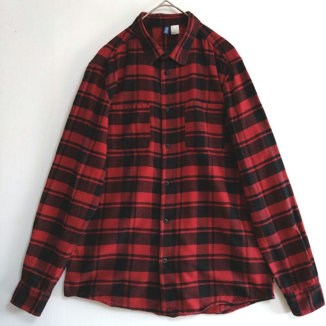 - 2631 H&M 長袖ネルシャツ M 赤 黒 チェック柄 US古着