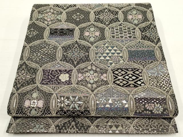 > 平和屋着物▼六通柄袋帯 金華山織 七宝花文 銀糸 正絹 逸品 AABA8535wj