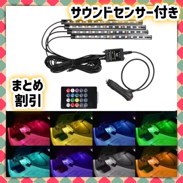 - まとめ割 4本 音楽連動 LEDフロアライト シガーソケット スイッチ リモコン 付き 車内 足元 間接照明 装飾用 LEDテープ イルミ 12V 汎用