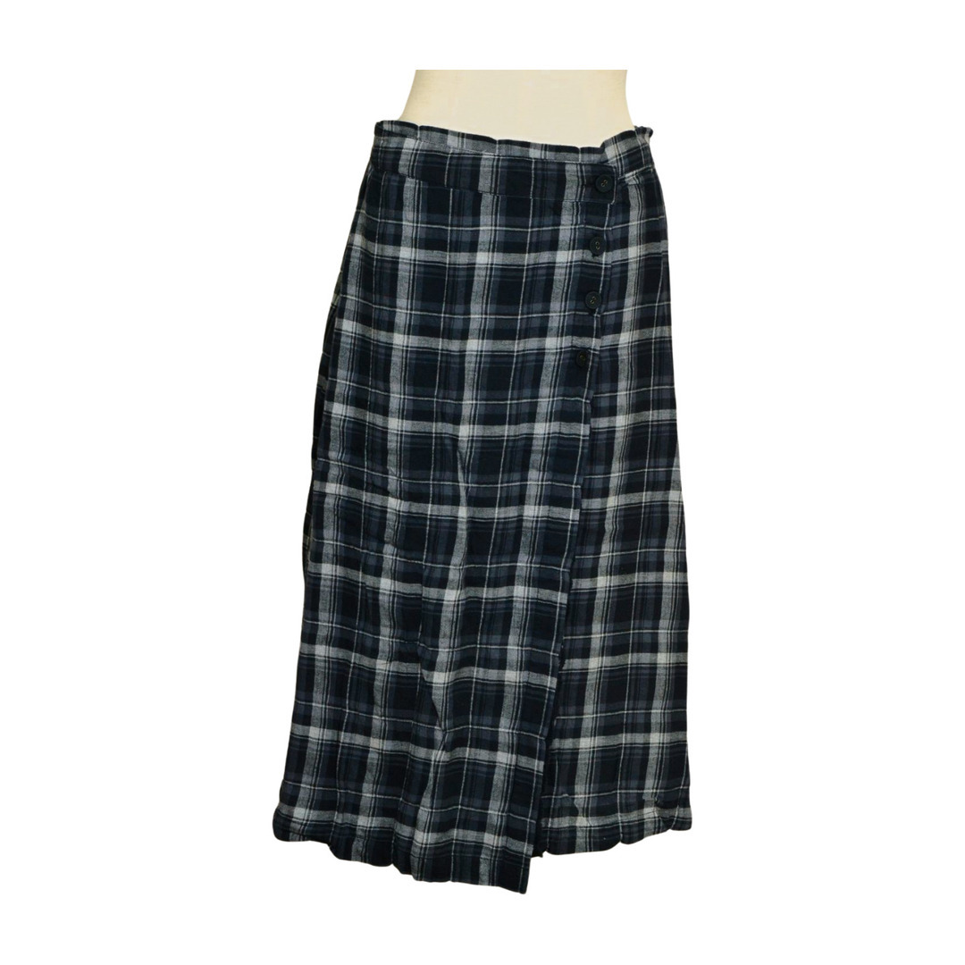 - ニコアンド niko and… シャーリング チェック巻き スカート ロング丈 グレー コットン レディース F-M6002