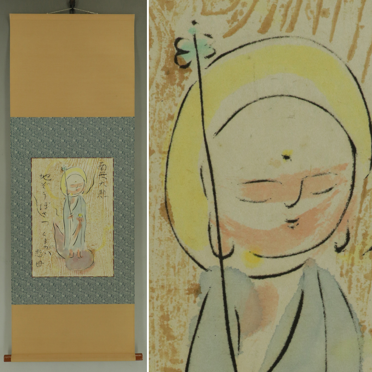 - 【肉筆】仏画【地蔵菩薩】◆紙本◆合箱◆掛軸 s09024