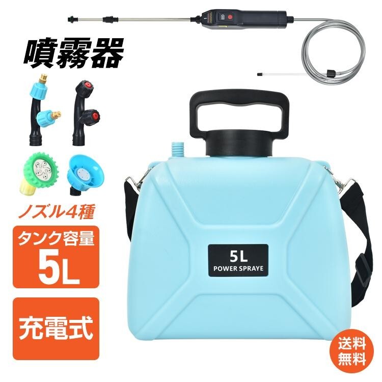 > 「期間限定!週末特価セール!」送料無料 充電式電動噴霧器 自動噴霧器 5L 肩掛け式 コードレス バッテリー式 USB充電 小型 軽量 sg205