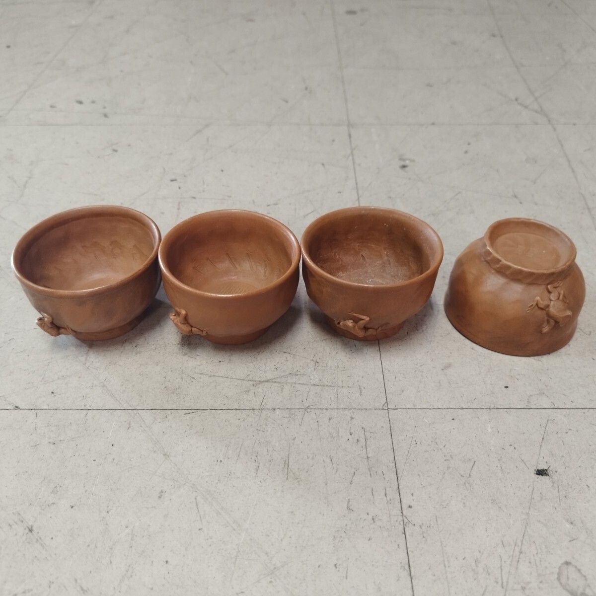 - 戸06c 田島万古焼 室井勝三 蛙摘 湯呑 5客 勝三窯 田嶋勝三 ぐいみ おちょこ 萬古焼 福島県南会津 無事にカエル レトロ 骨董 アンティーク