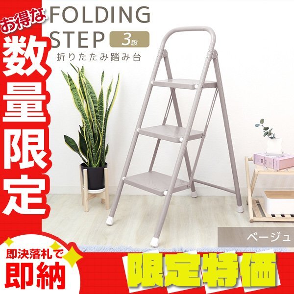 - 【限定セール】新品 折りたたみ ステップ台 脚立 3段 耐荷重150kg 滑り止め コンパクト ステップスツール 踏み台 おしゃれ はしご 掃除