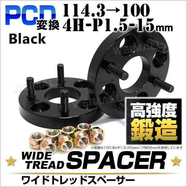 > Durax正規品 PCD変換 ワイドトレッドスペーサー 114.3→100-4H-P1.5-15mm 黒 4穴のPCD114.3mmからPCD100mm ブランド