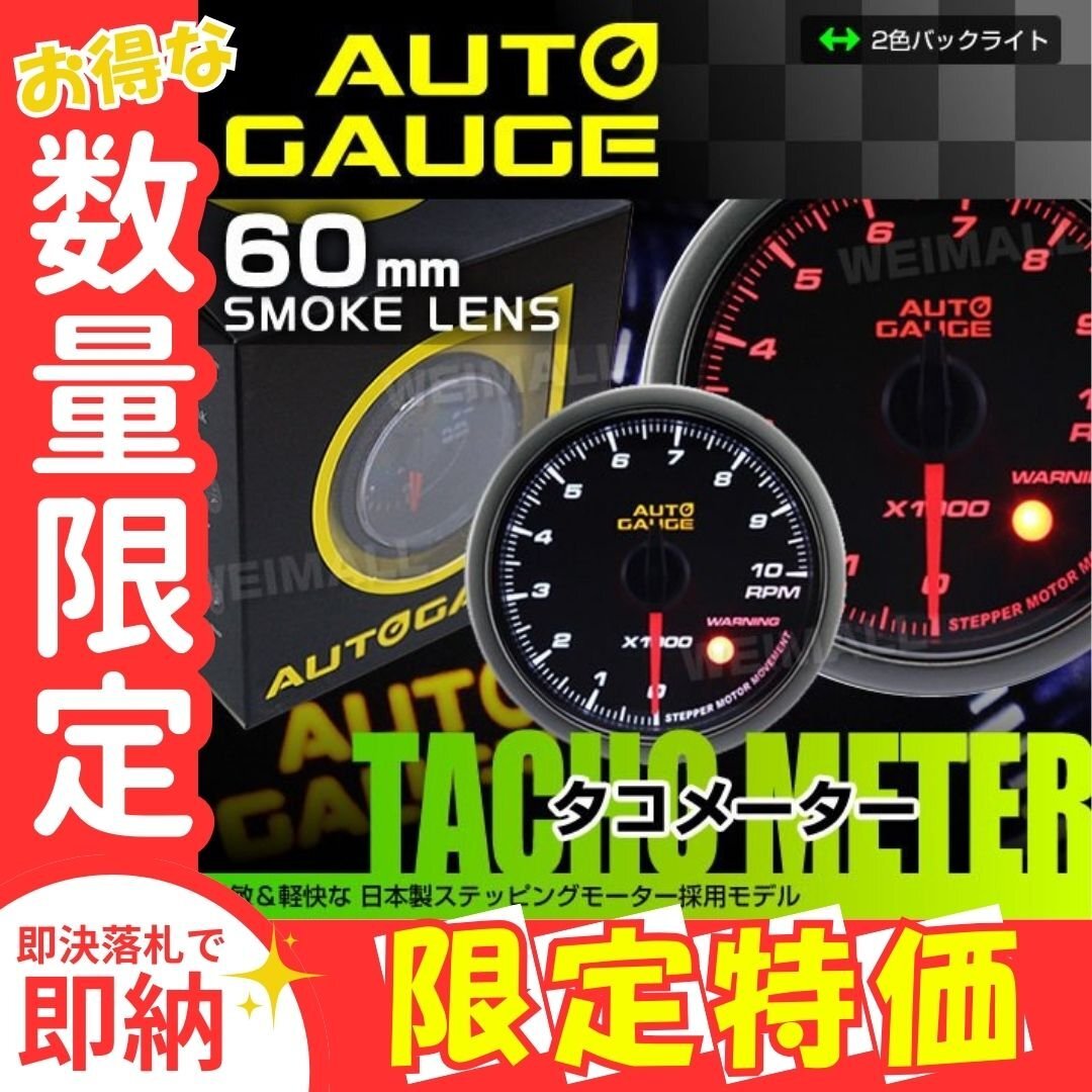- 【限定セール】オートゲージ タコメーター 60mm 日本製ステッピングモーター ワーニング機能 LEDバックライト スモーク AUTOGAUGE 430