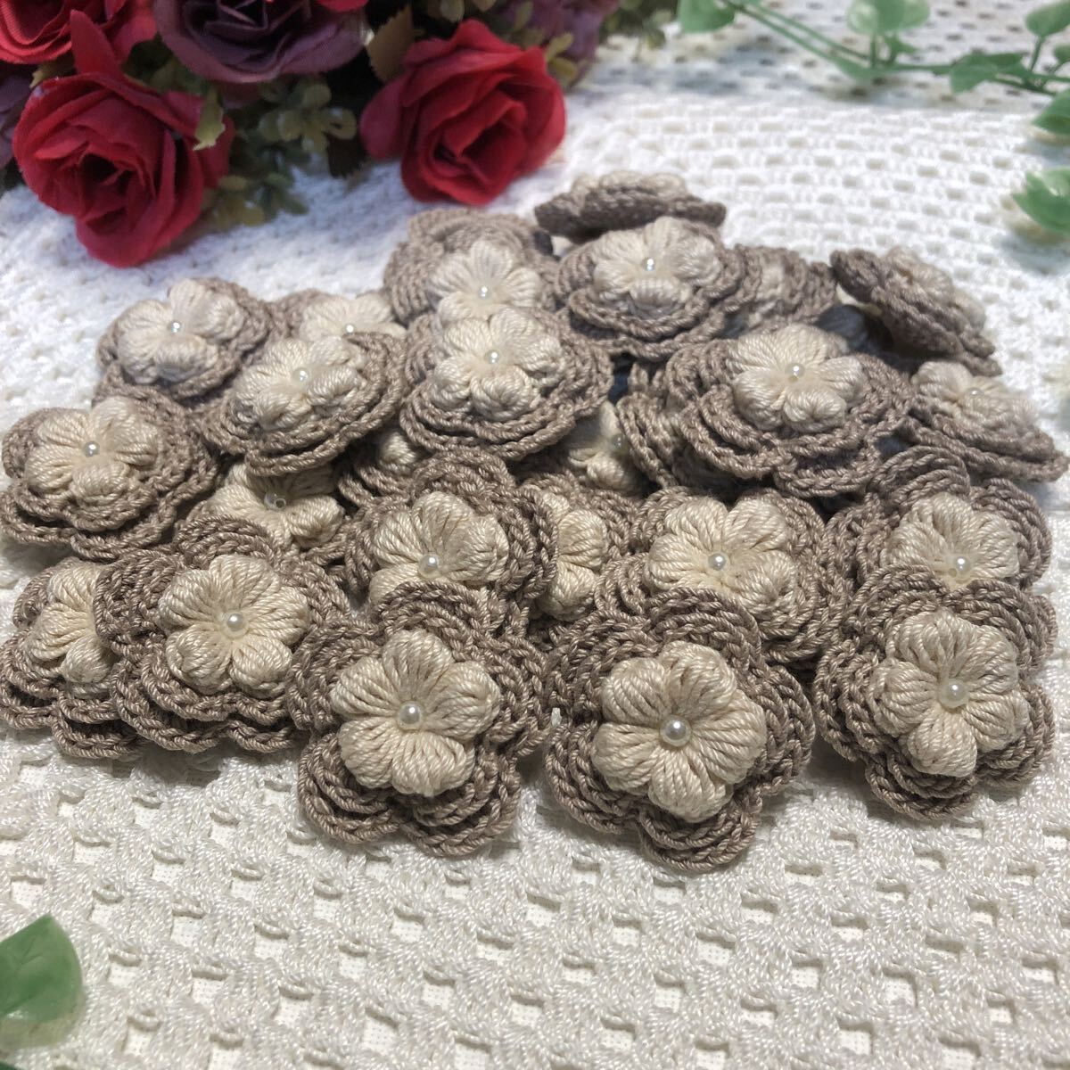 - (No.140)☆ハンドメイド☆真ん中ぷっくり可愛い3重お花(^^)30枚 モチーフ パーツ等に