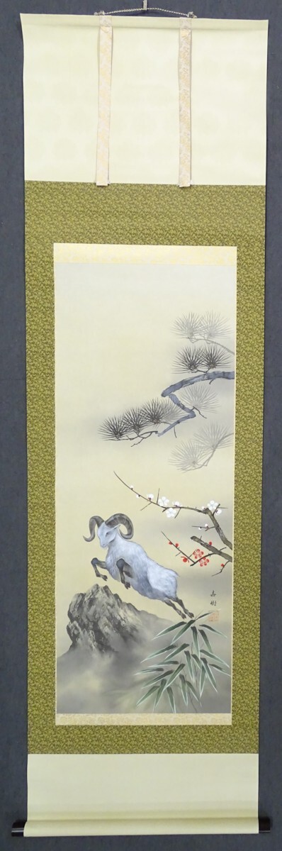 > 品名: 掛軸 ・作者: 福山嘉樹 ・画題:「未」・技法: 日本画(直筆) 〈掛軸45〉(R4-6-12-48.5)