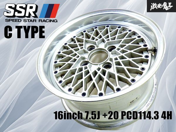 > 【当時物!】SSR SPEED STAR スピードスター SSR Cタイプ 16インチ 7.5J +20(実測) PCD114.3 4穴 ハブ73 シルバー ホイール単体 1本 棚46B