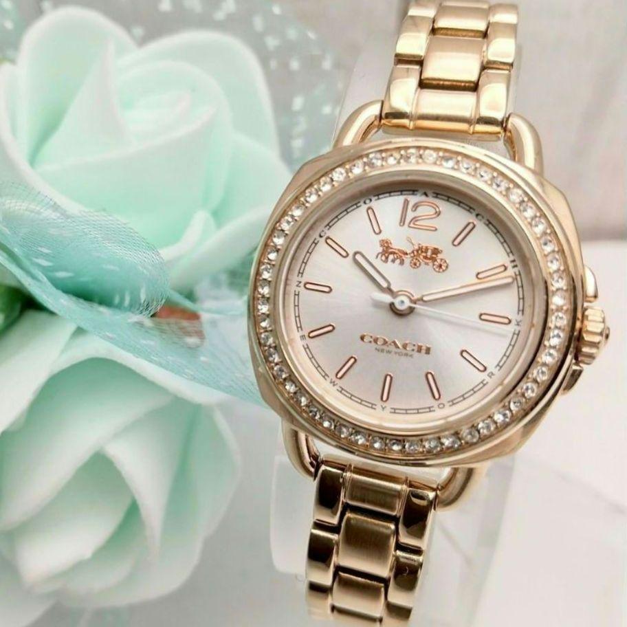- 稼働品 美品 コーチ ストーン付き 腕時計 レディース クォーツ式