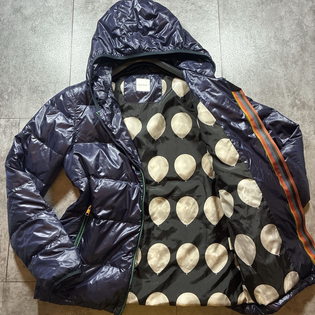 > 【美品・L】Paul Smith ポールスミス 現行タグ ダウンジャケット フード付 パープル系 メンズ バルーン柄裏地 秋冬 アウター フランス産
