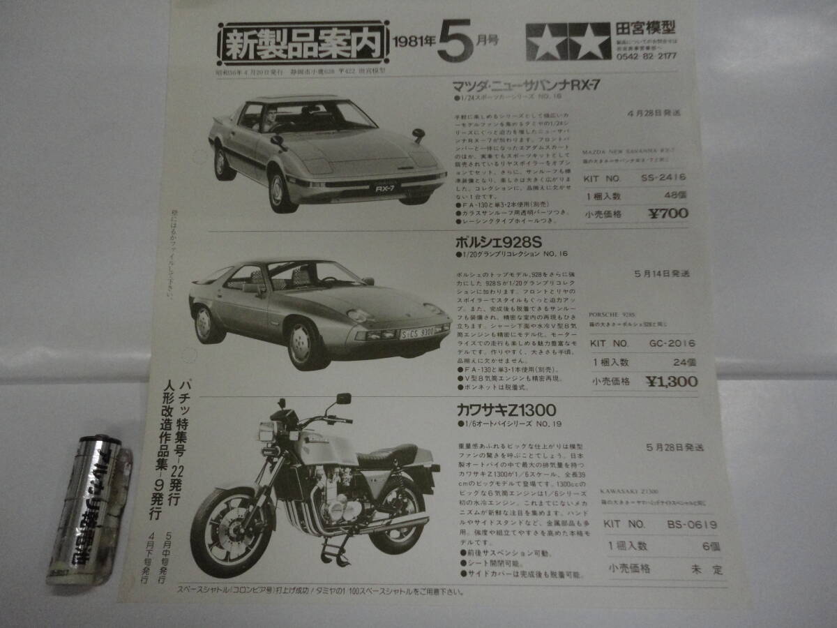 - 当時物 タミヤ 店頭 新製品案内 チラシ 1981年 5月号 昭和56年 サバンナ ポルシェ928S カワサキZ1300