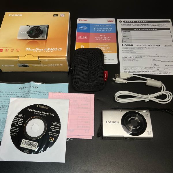 > Canon PowerShot A3400 IS Digital Camera 16.0MP 5X Optical Zoom シルバー キャノン コンパクトデジタルカメラ 箱付 ジャンク